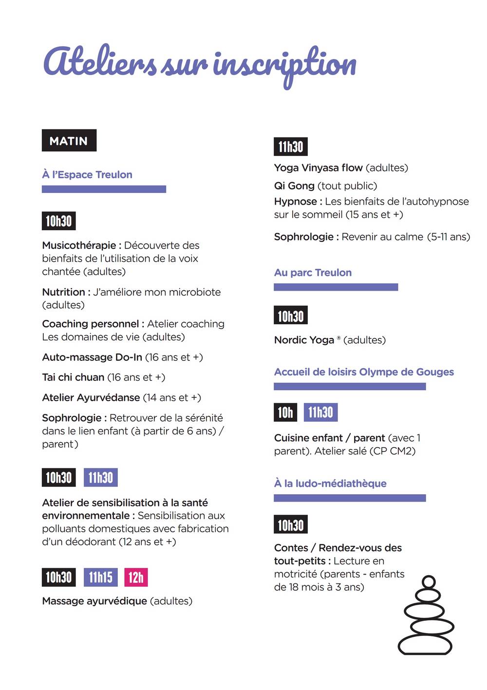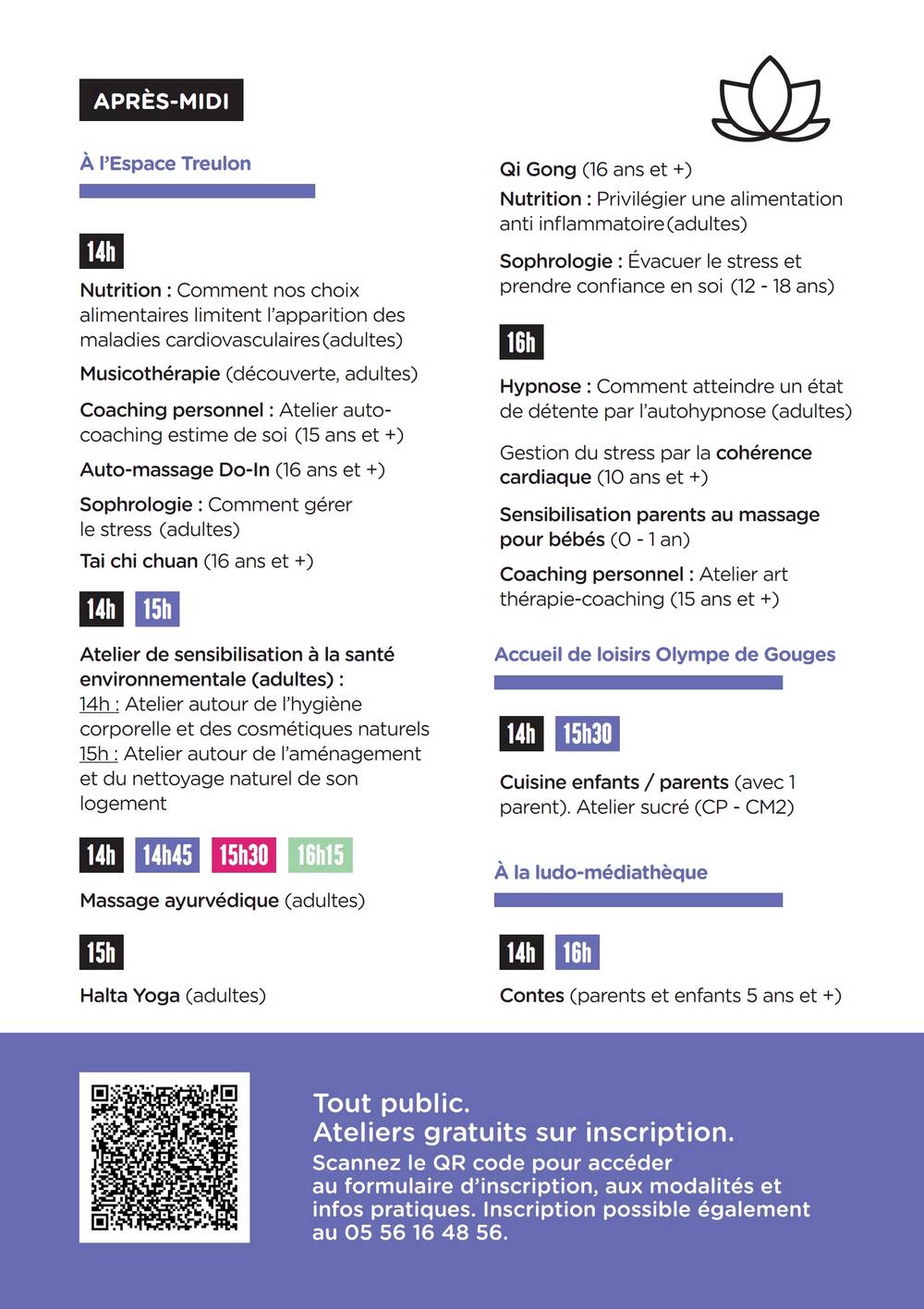 Horaires de l’atelier « découverte » : samedi 14 octobre 2023 de 10h30 à 12h